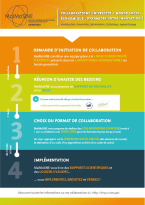 - MaiMoSiNE vous propose de réaliser des collaborations courtes (3 mois à 1 an) ou d’obtenir une thèse CIFRE pour les formats les plus longs (3ans)